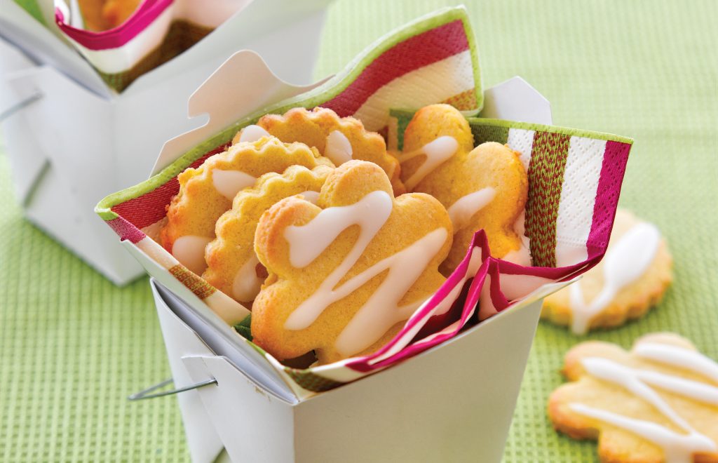 1 Preheat oven to 200°C. Line 2 baking trays with baking paper. Beat spread, sugar and lemon zest together until light and creamy.