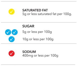 The dressing in the salad packs can be high in fat, both the good fats (polyunsaturated and monounsaturated) and saturated fats (the fats we want to keep to a minimum). We recommend choosing salads (including dressing) with 5g saturated fat or less per 100g.